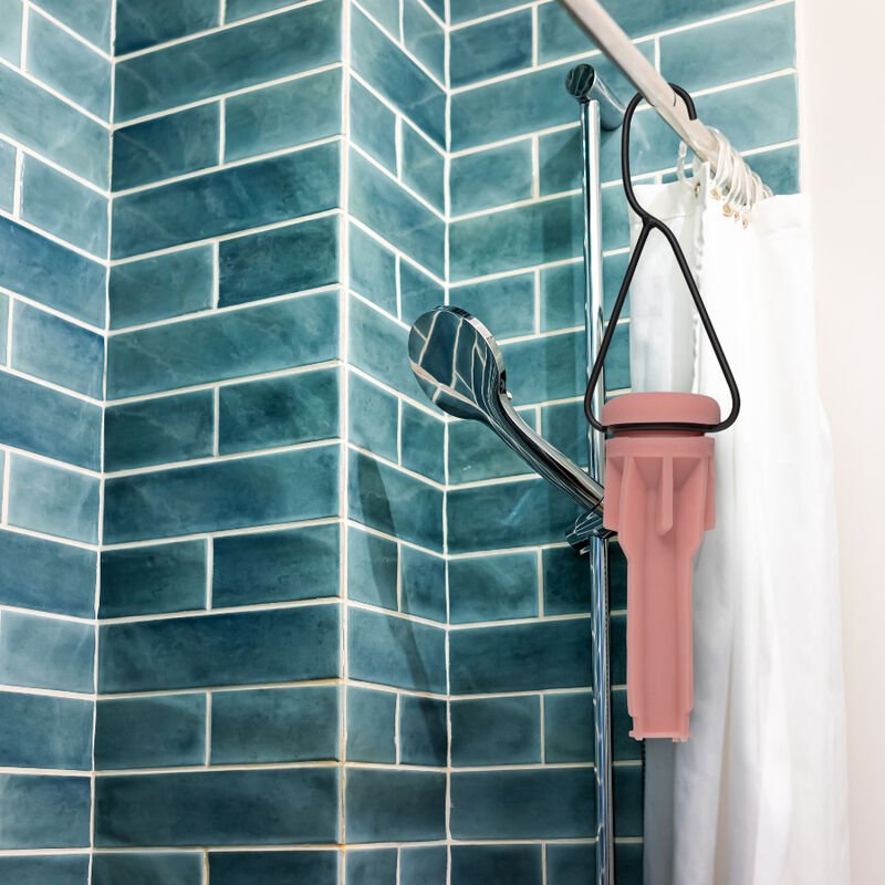 - Prenda o escorredor em uma haste ou barra segura em uma área que não seja danificada pela água, como um toalheiro de banheiro ou puxadores de chuveiro. NÃO coloque sobre ou perto de equipamentos ou fontes elétricas.
